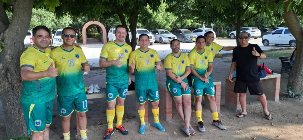 Vestido con la camisa negra de Juanes, Rafael Noya García apareció en la cancha de la Universidad Sergio Arboleda para darle aliento a sus amigos los verdes de San Luis Beltrán, la Guadaña José Luis Campo sabe que los años no vienen solo entonces reposa un intenso ardor en las piernas ¡Es circulación! Grita para esconder su llegada a viejo. En la cancha es un partido de toma y dame, Fitogol Demoya después de 7 años sin marcar quiere inflar la red, pero nada que se puede y se lamenta un 0x0 los lleva al descanso, El australiano Patrick tiene un duelo con el camarón Rivera, empate en esa lucha.